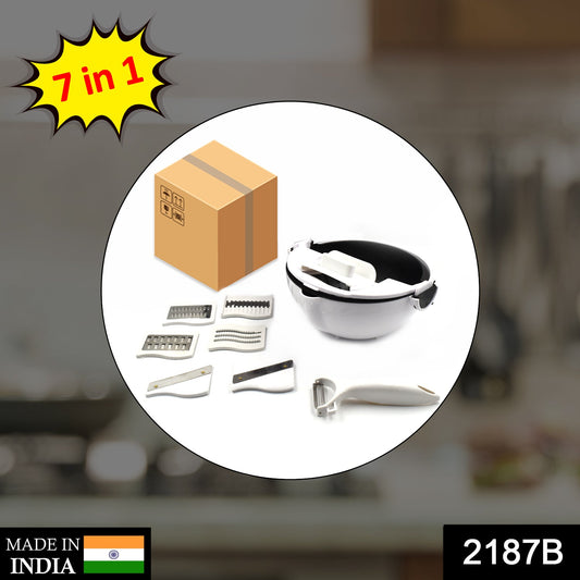 Premium Portable 7 in 1 Multifunction Magic Rotate Vegetable Cutter / Chopper / Slicer / Shredder with Drain Basket with various Dicing Blades