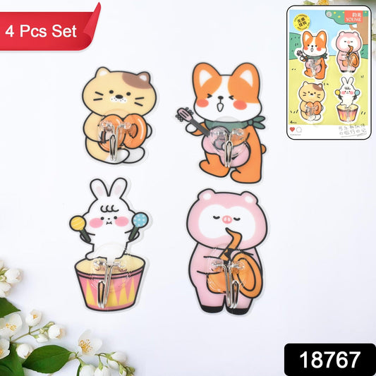 Many Colours Cartoon Shaped Self Adhesive Wall Hooks (4 Pcs Set)