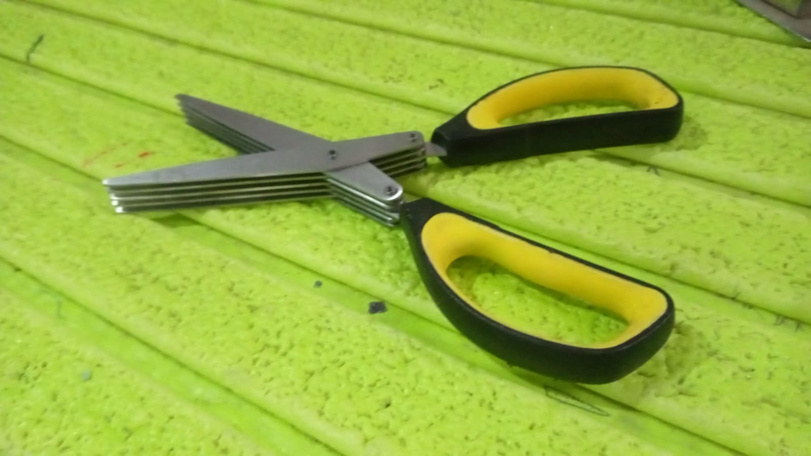 Multi-layer scissors is a good helper of kitchen shears scrawled food, can be used to cut scallions, cut noodles, kelp, cut seaweed, etc. is also a good tool of office shredding confidential. Attention: Please place where children can reach, cut the handle not near the high temperature and fire.