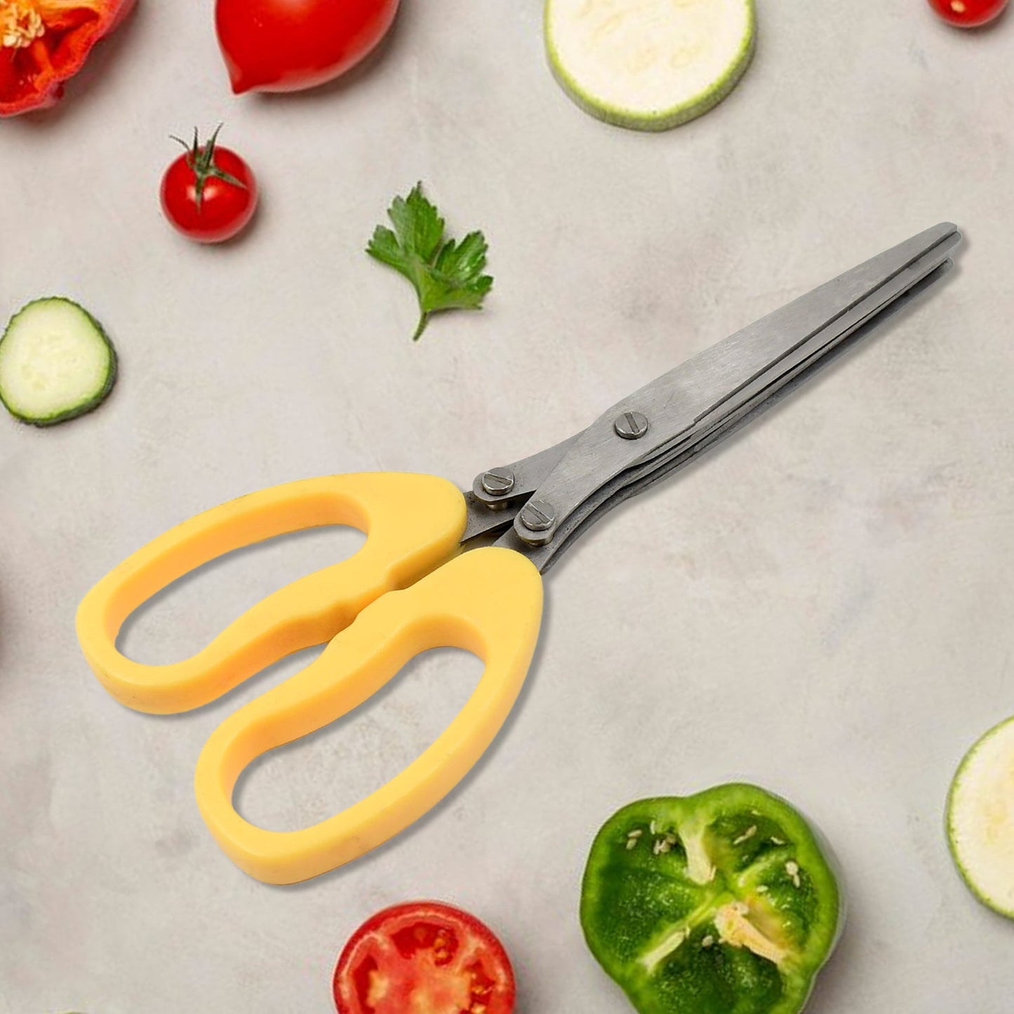 Multifunction Vegetable Stainless Steel Herbs Scissor With 3 Blades (1 Pc)