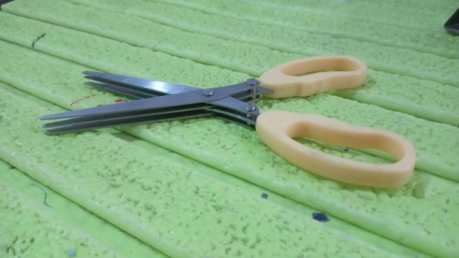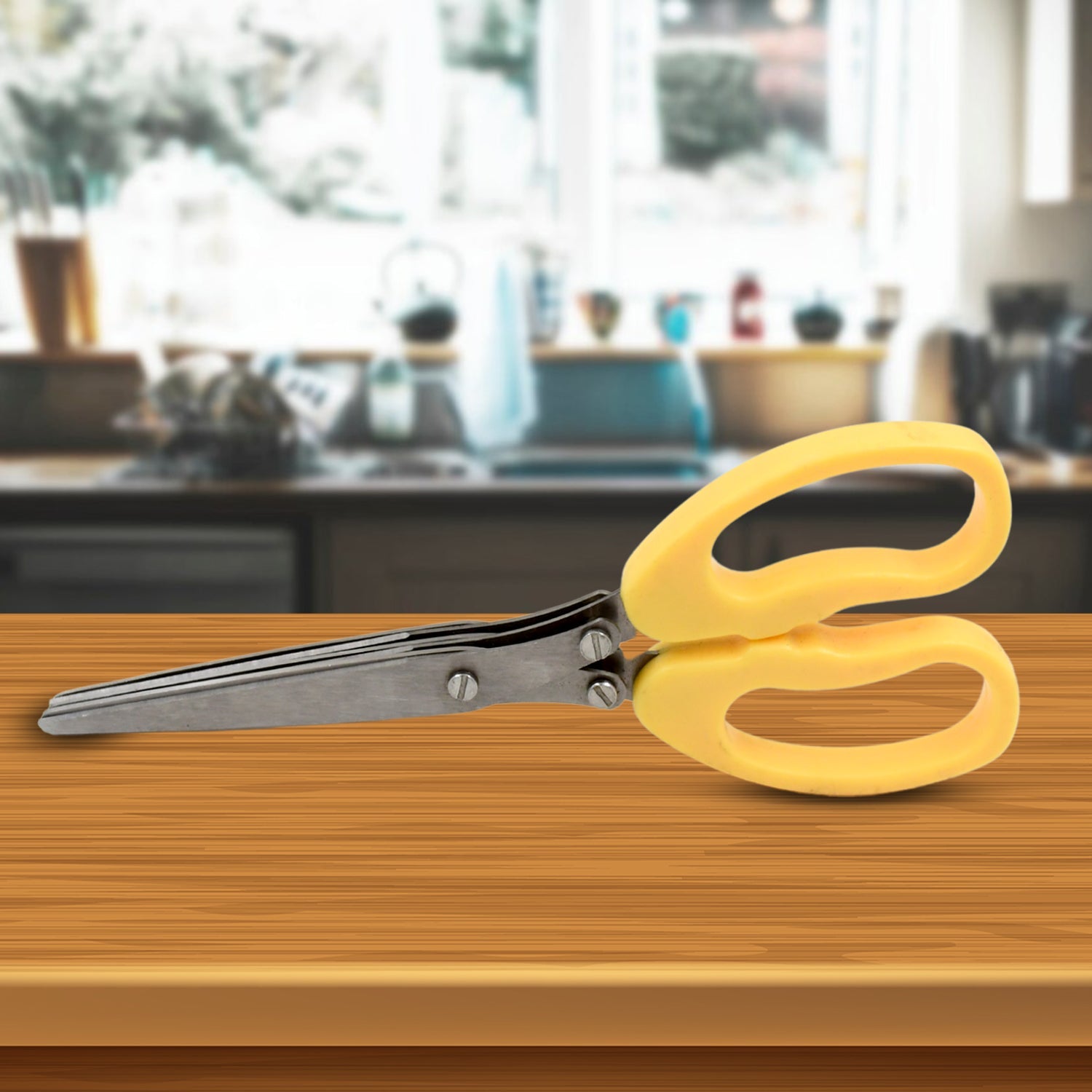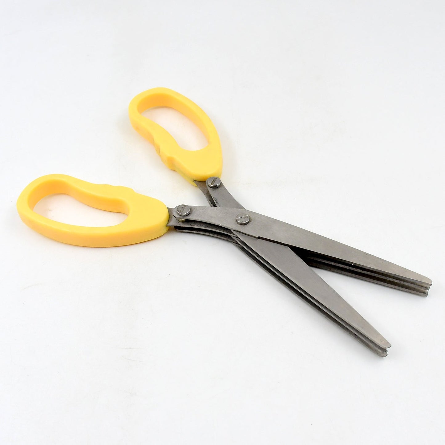 Multi-layer scissors is a good helper of kitchen shears scrawled food, can be used to cut scallions, cut noodles, kelp, cut seaweed, etc. is also a good tool of office shredding confidential. Attention: Please place where children can reach, cut the handle not near the high temperature and fire.