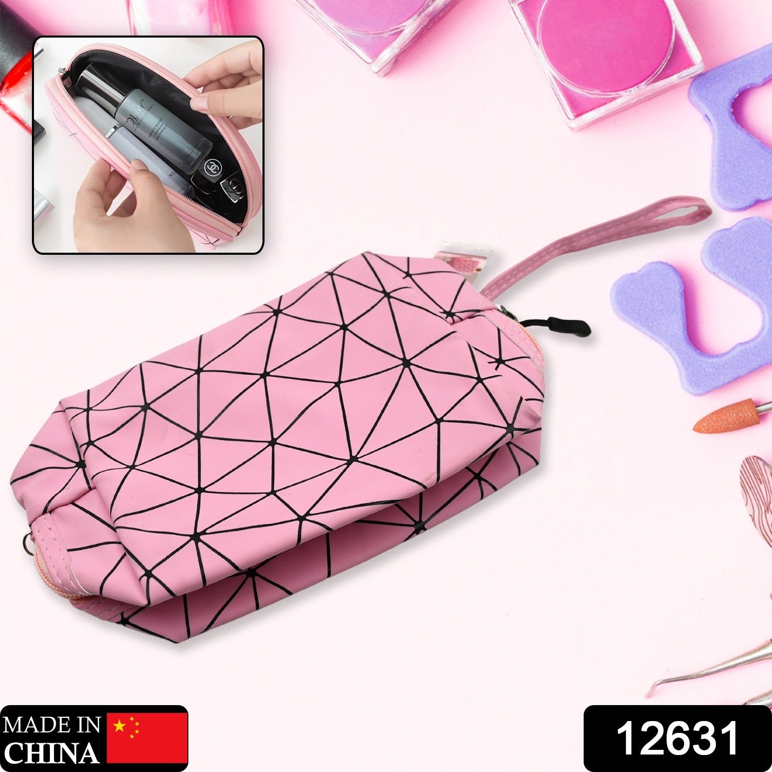 12631 Multipurpose Portable Travel Hand Pouch With Zipper / Bag Makeup Pouch for Women, Travel Makeup Bag Portable Carry Cosmetic Organizer Bag Pouch for Girls