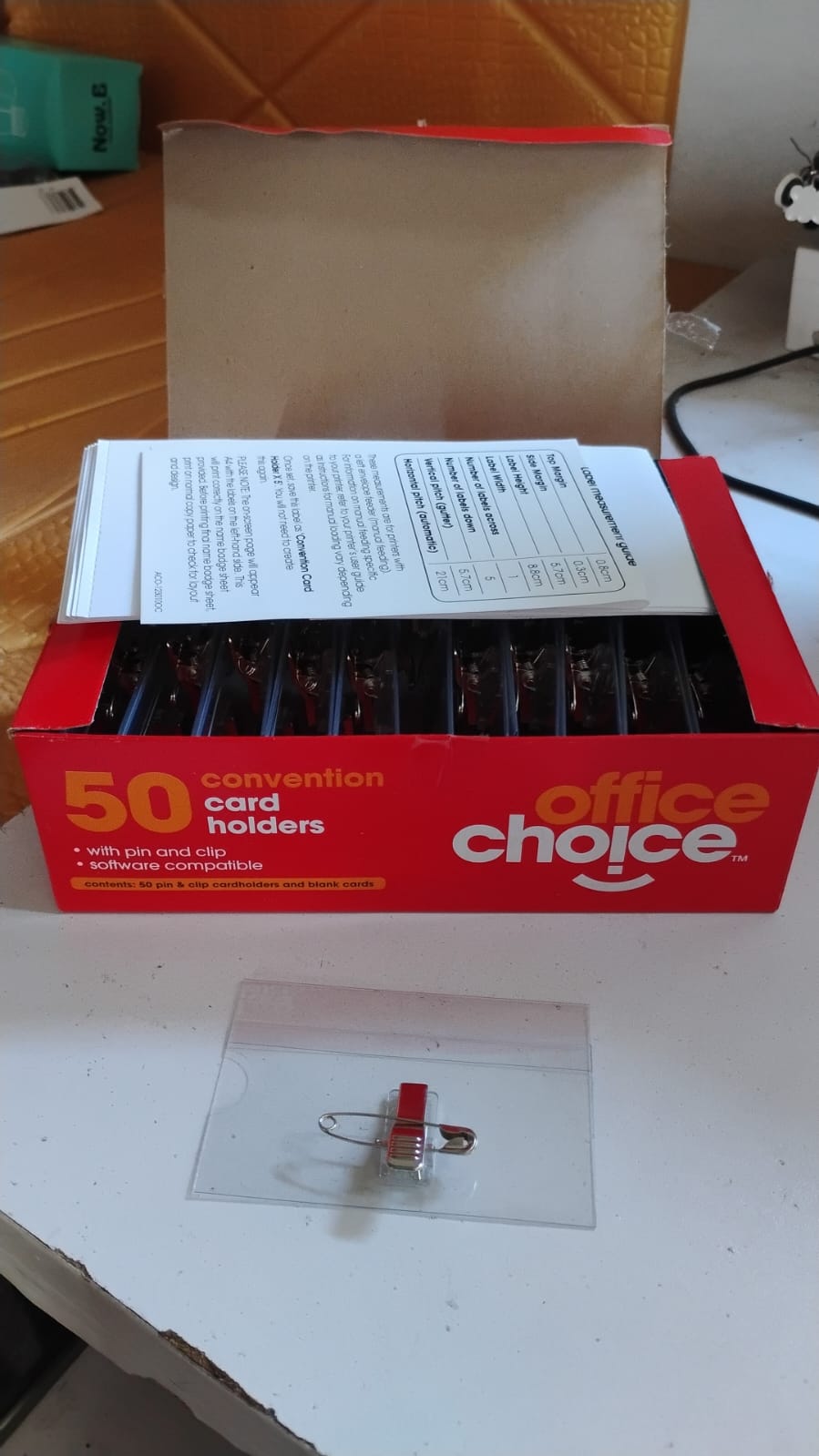 Plastic Transparent cardholders With Pin & Clip 90 mm x 60 mm (50 Pcs Set)