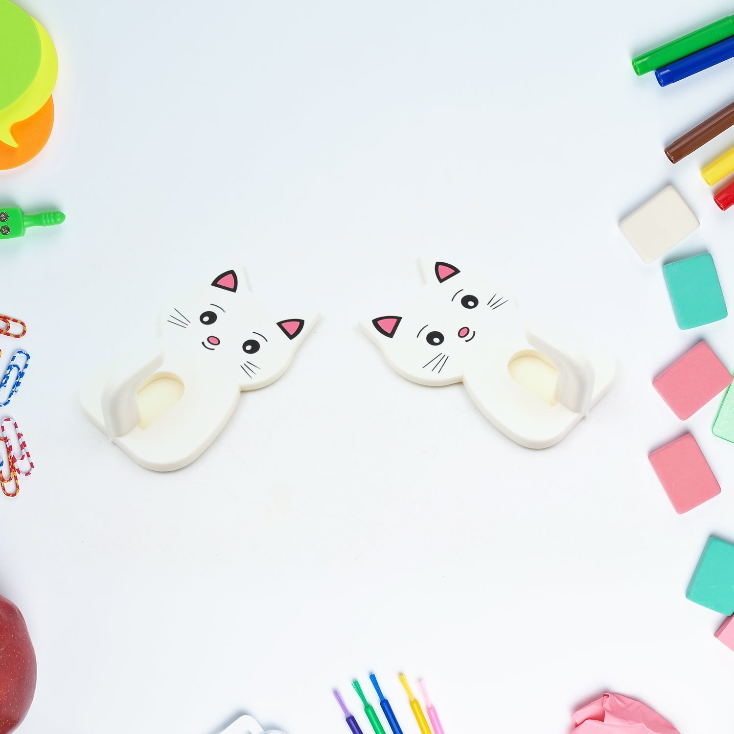 17616 Cute Cat Wall Mounted Hook, Heavy Duty Hook, Sticky Hook Household For Home, All Type Wall Use Hook, Suitable for Bathroom, Kitchen, Office (2 Pc Set)