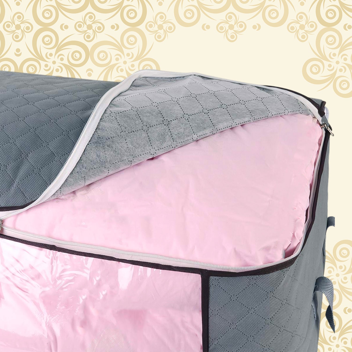 Zippered Multipurpose Storage Bag for Closet King Comforter, Pillow, Quilt, Bedding, Clothes, Blanket Organizers with Large Clear Window & Carry Handles Space Saver (60×30 CM / 1 Pc)