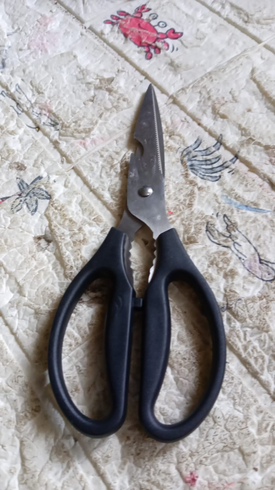 - Scissor Design Integrates Detachable Scissor Blades with Bottle Opener, Fish Scale Remover, Nut Cracker, Egg Breaker, Screwdriver.