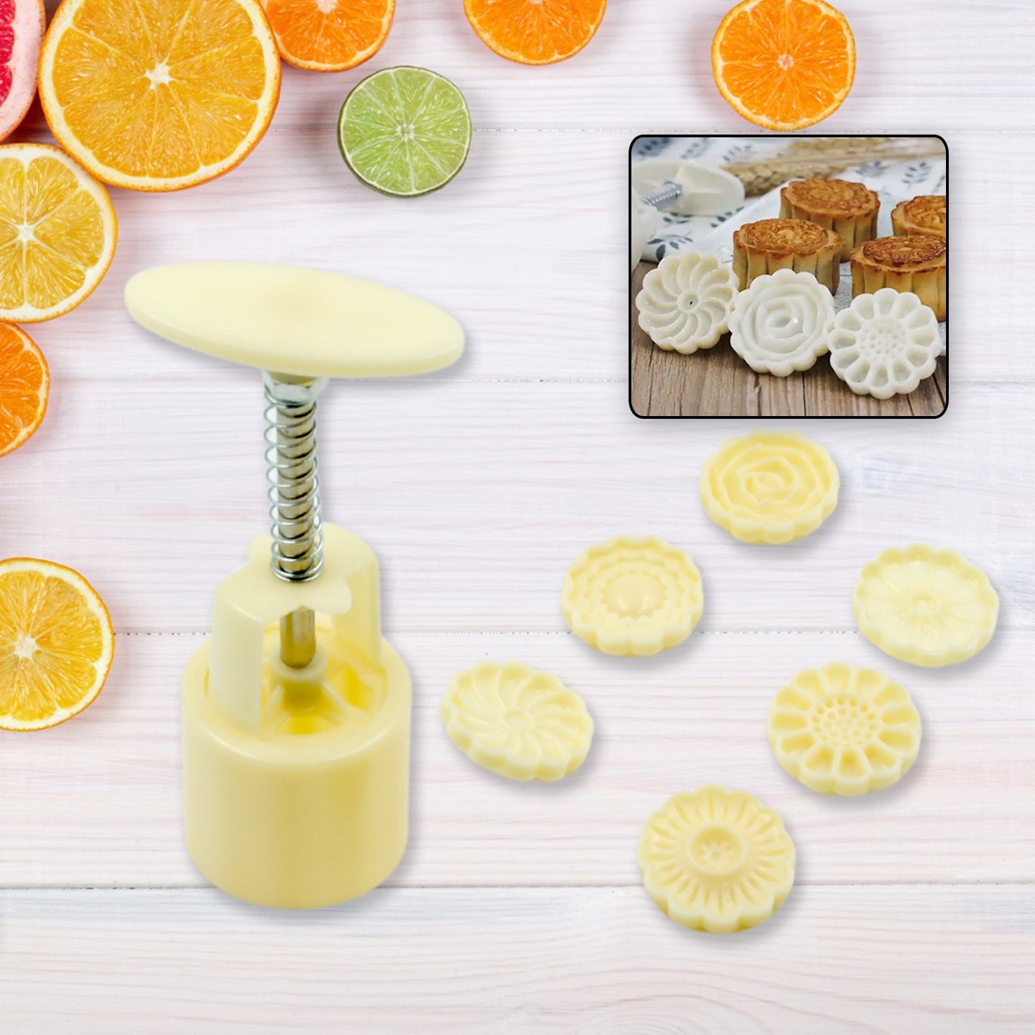 5471 Moon cake Mold with 6 Stamps, Flowers Design Cookie Stamp Moon Cake Mold Stamps - Mid-Autumn Festival Cookies Cutters - DIY Decoration Moon cake Press Molds