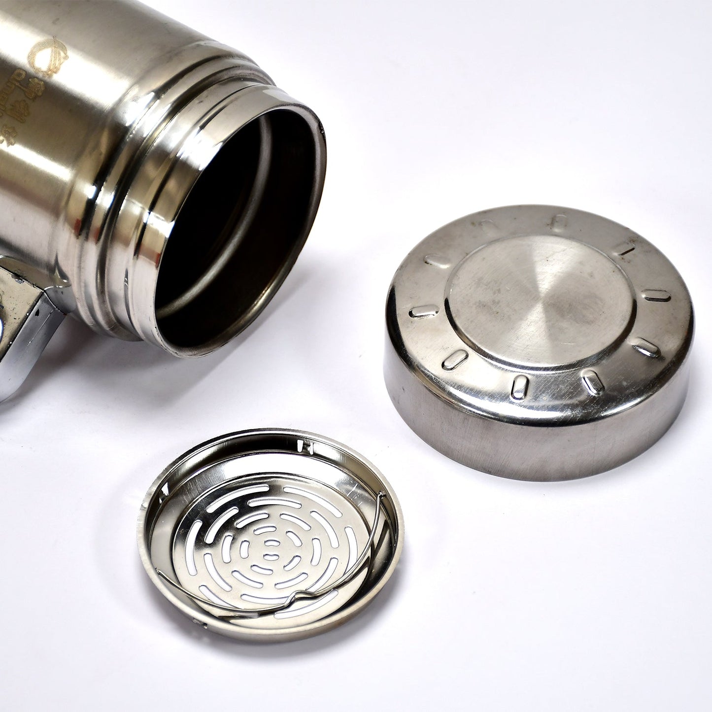 This thermos is made of high-quality food-grade stainless steel and BPA free materials. Double-walled Vacuum-insulated technology keeps beverages hot or cold for hours, Inner coating for better temperature retention. A unique bottle that makes pouring completely hassle-free and spill-free. Both the interior and exterior surfaces of this vacuum thermos have been fabricated using quality stainless steel, making it 100% rustproof. It has a capacity of 500 ml and comes with drinking cups.