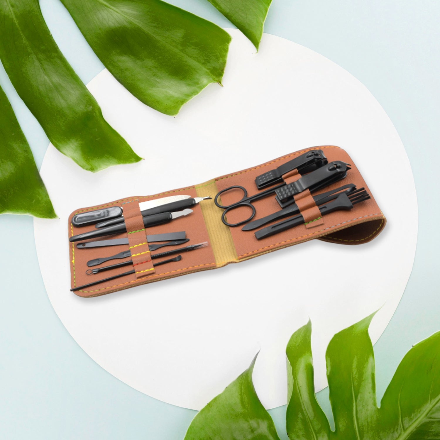 Grooming Kit, Manicure Set Portable Stable Practical Durable with PU Leather Case for General Purpose for Face Treatment for Manicure for Pedicure, Nail Clipper Tool Set (12 Pc Set)