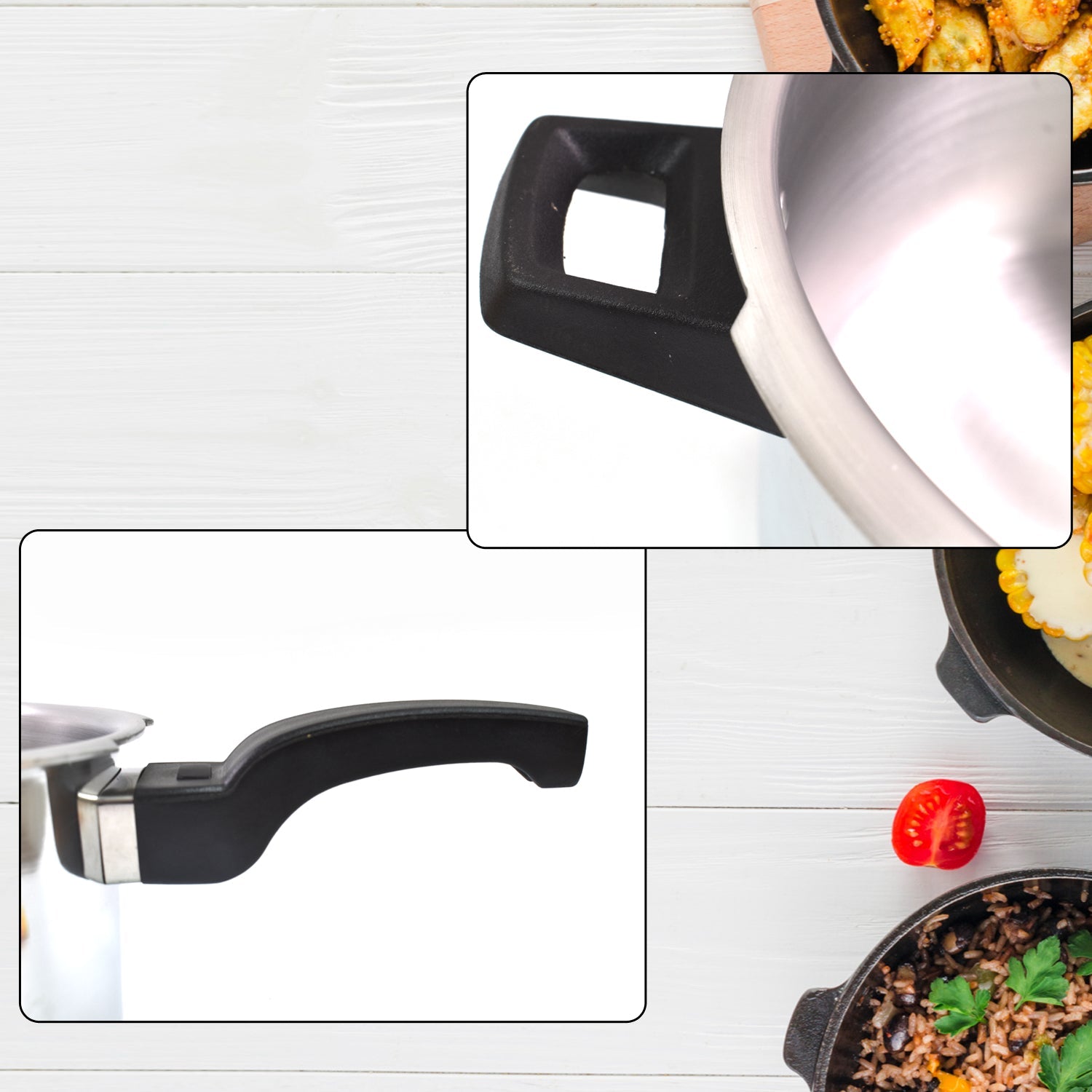 - Gasket : Heat-resistant, Thicker, Durable. Weight Set: Pressure control, Easy attach. Handle: Grip Handle, Weight distribution, Cool-touch, Strong attached.