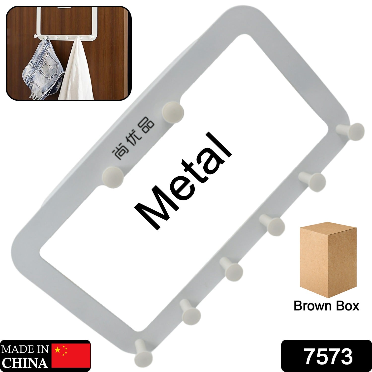 7573 Multi-Function Metal Door Hook, Clothes Hook Rack Easy Installation, No Drilling Required, for Hanging Hook Rack Rail, Extra Long Coat Hanger Wall Mount for Clothes, Jacket (8 Hook)