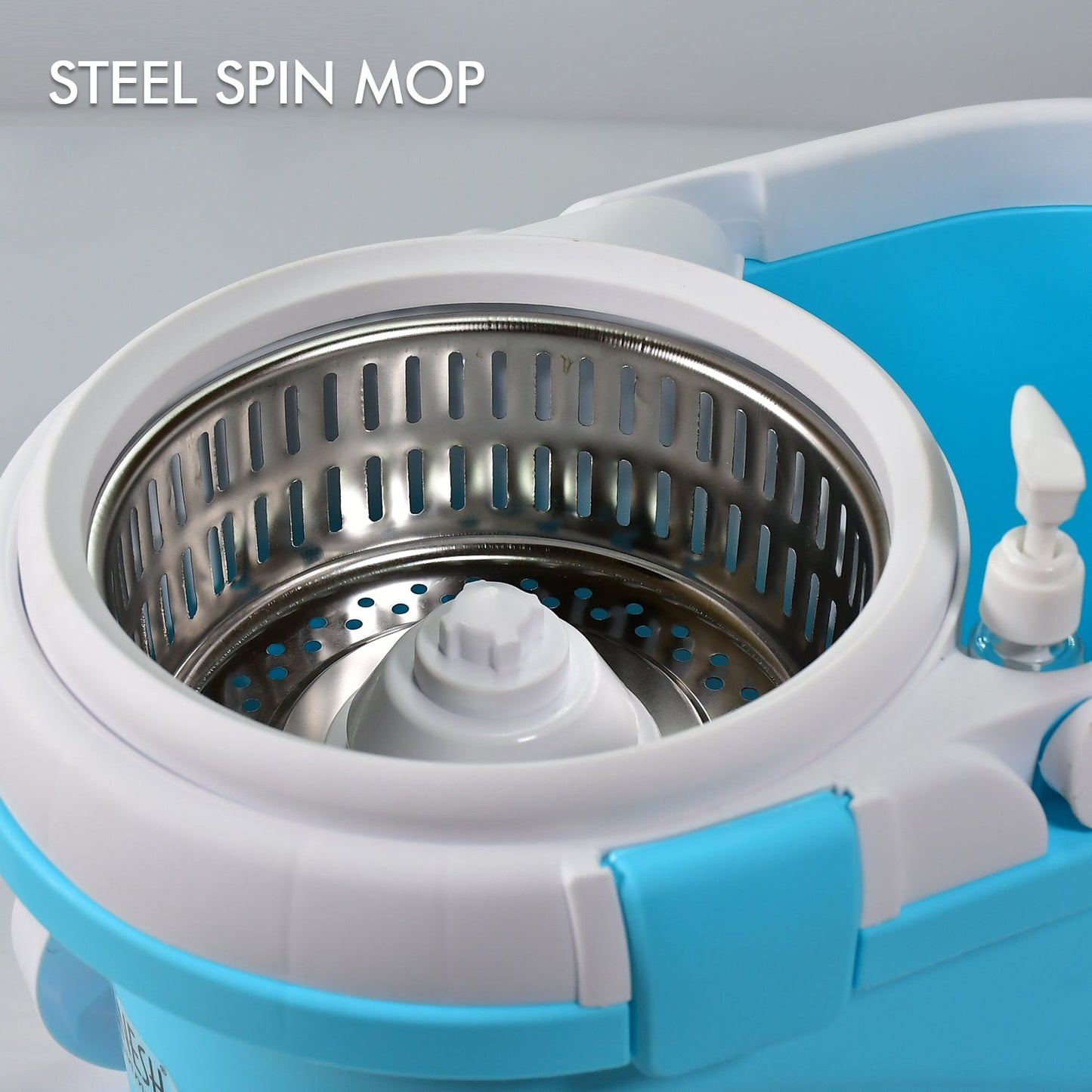 8713 GANESH Prime Plus Steel Spinner Bucket Mop 360 Degree Self Spin Wringing with 2 Absorbers for Home and Office Floor Cleaning Mops Set.