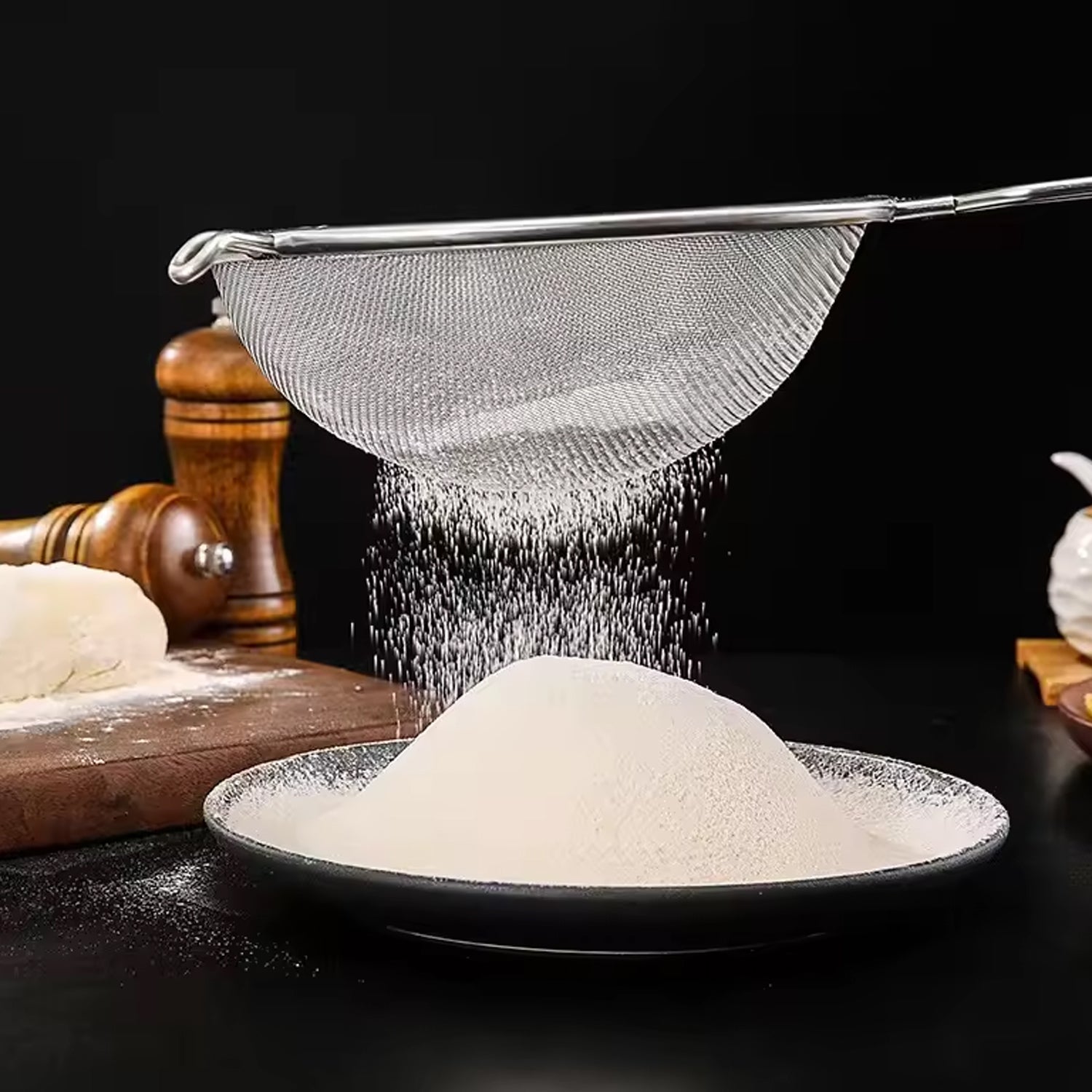 - Fine Mesh Strainer with Handle Stainless Steel Oil Strainer Skimmer Flour Sifter Sieve Colanders Flour Coffee Mesh Filter Ladle for Hot Pot Soup Home