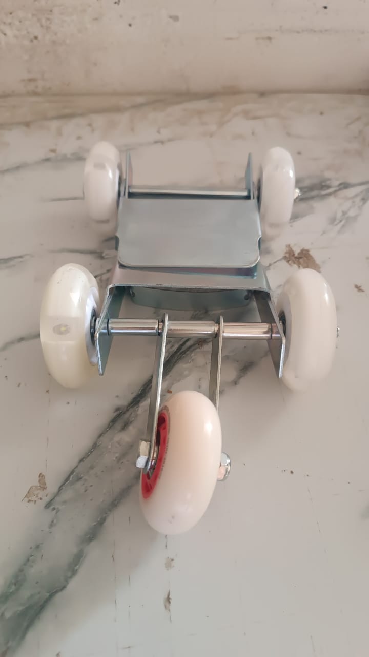 Heavy-Duty Motorcycle Front Wheel Parking Roller Stand – 4-Wheel Adjustable Metal Frame with Nylon Wheels – Parking & Moving Assistant for Bike Front Tyres – Garage & Workshop Tool – 1 Pc