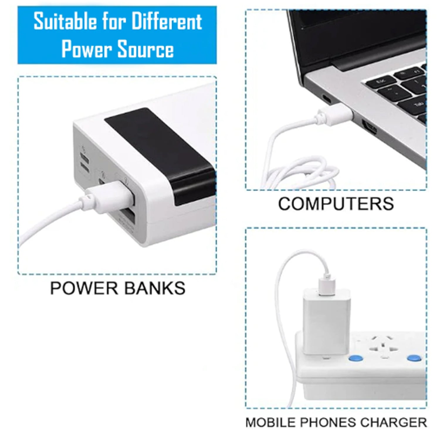 USB Powered: Corded electric base with USB cable and switch โ plug it into a laptop, adapter, or power bank for hassle-free use.