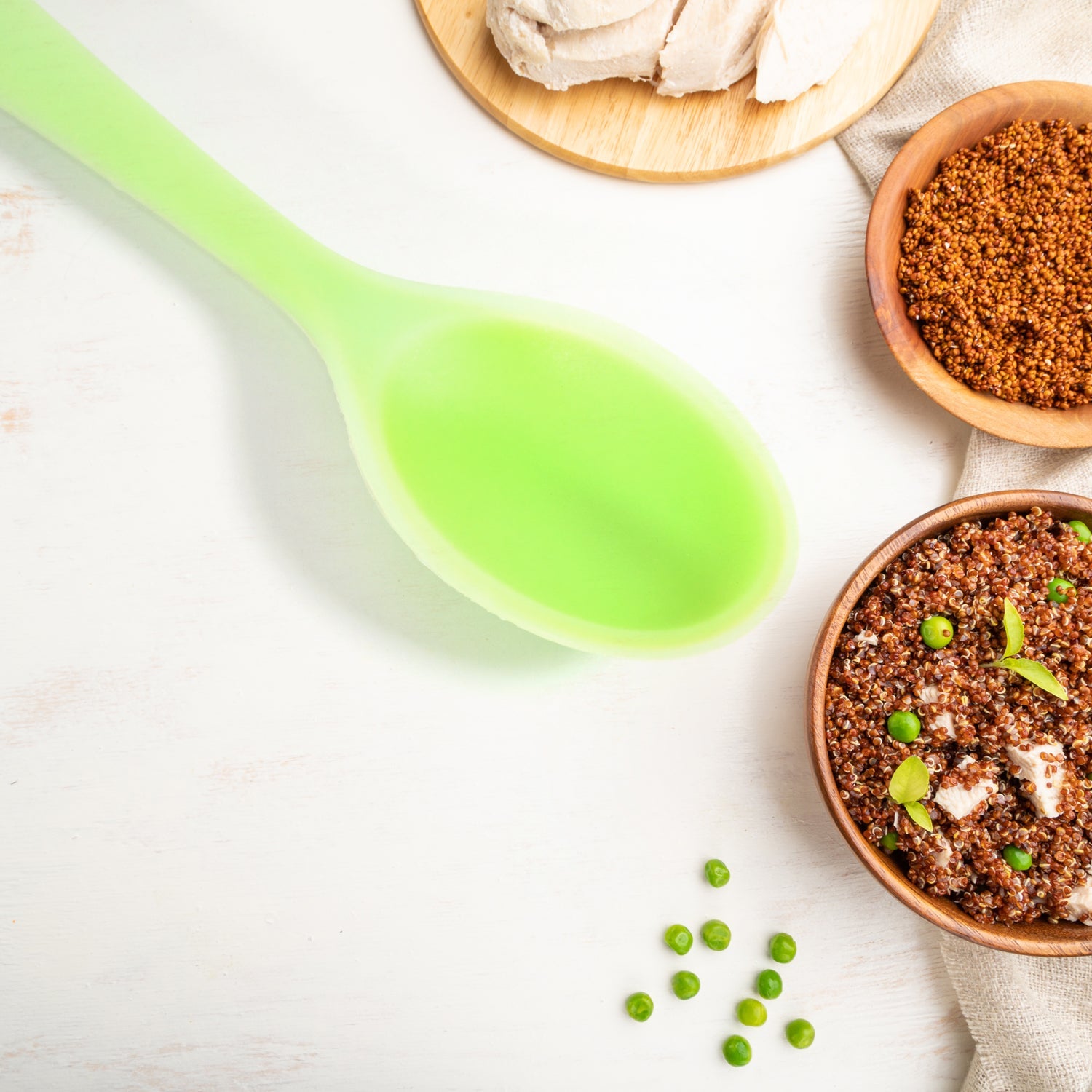 - This is perfect for your kitchen needs. Made of top-quality silicon, it's flexible, perfect for stirring, and won't scratch your cookware. Get all the benefits of a silicon kitchen item with this spoon.