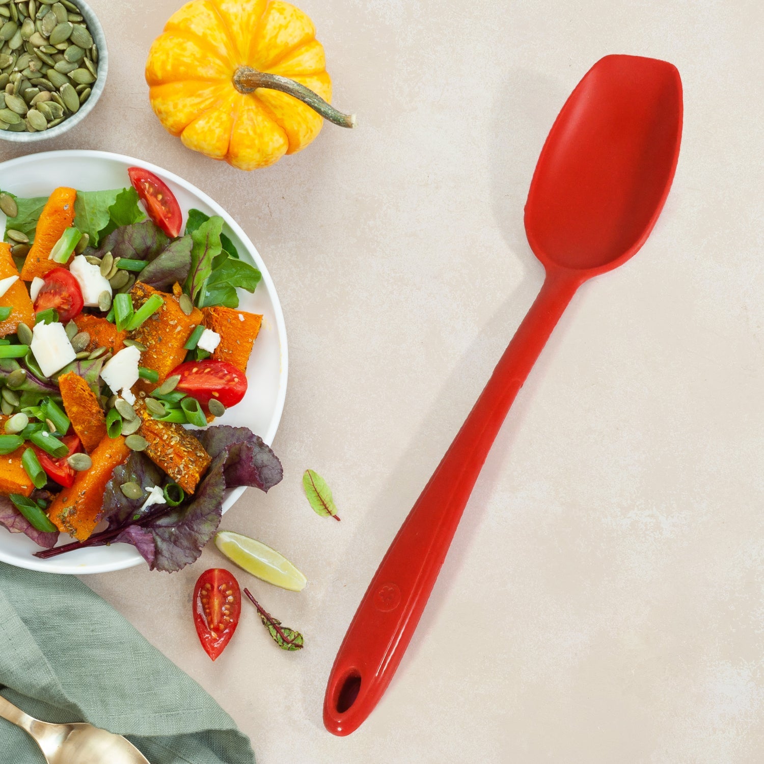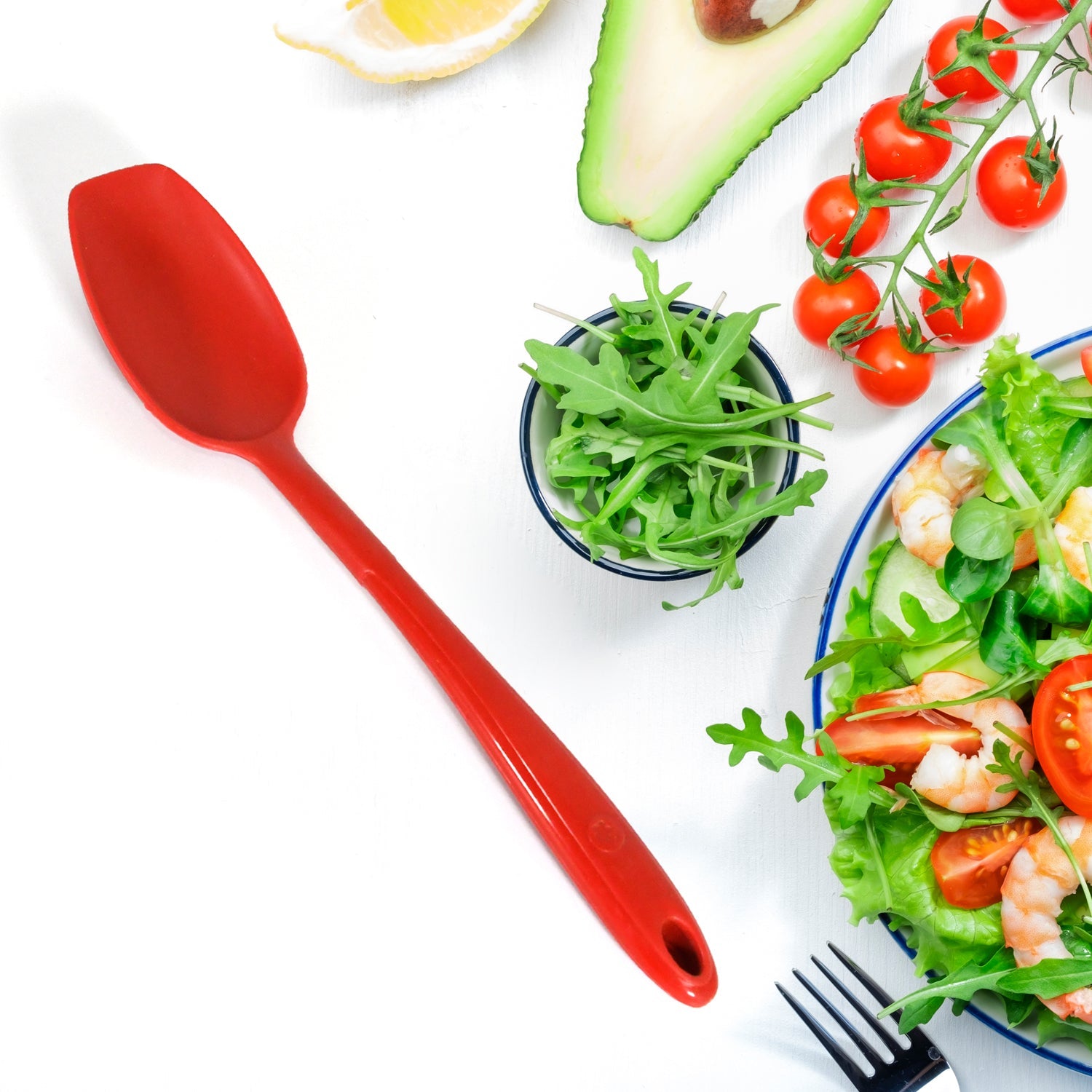 - This is perfect for your kitchen needs. Made of top-quality silicon, it's flexible, perfect for stirring, and won't scratch your cookware. Get all the benefits of a silicon kitchen item with this spoon.