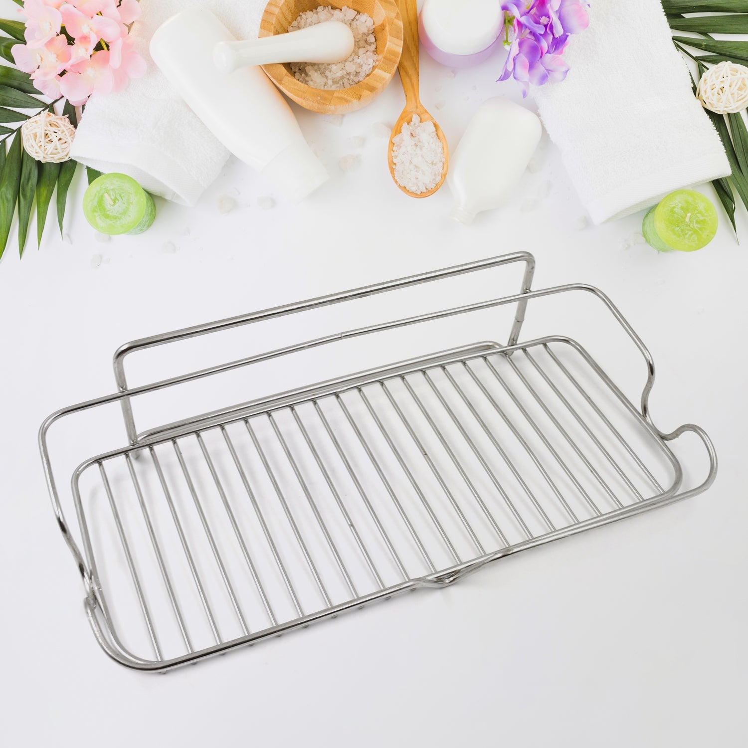 Stainless Steel Kitchen Bathroom Shower Shelf Storage Suction Basket Rack Adhesive Shower Shelf Rack, Wall Mounted Self-Adhesive No Drilling (1 Pc)